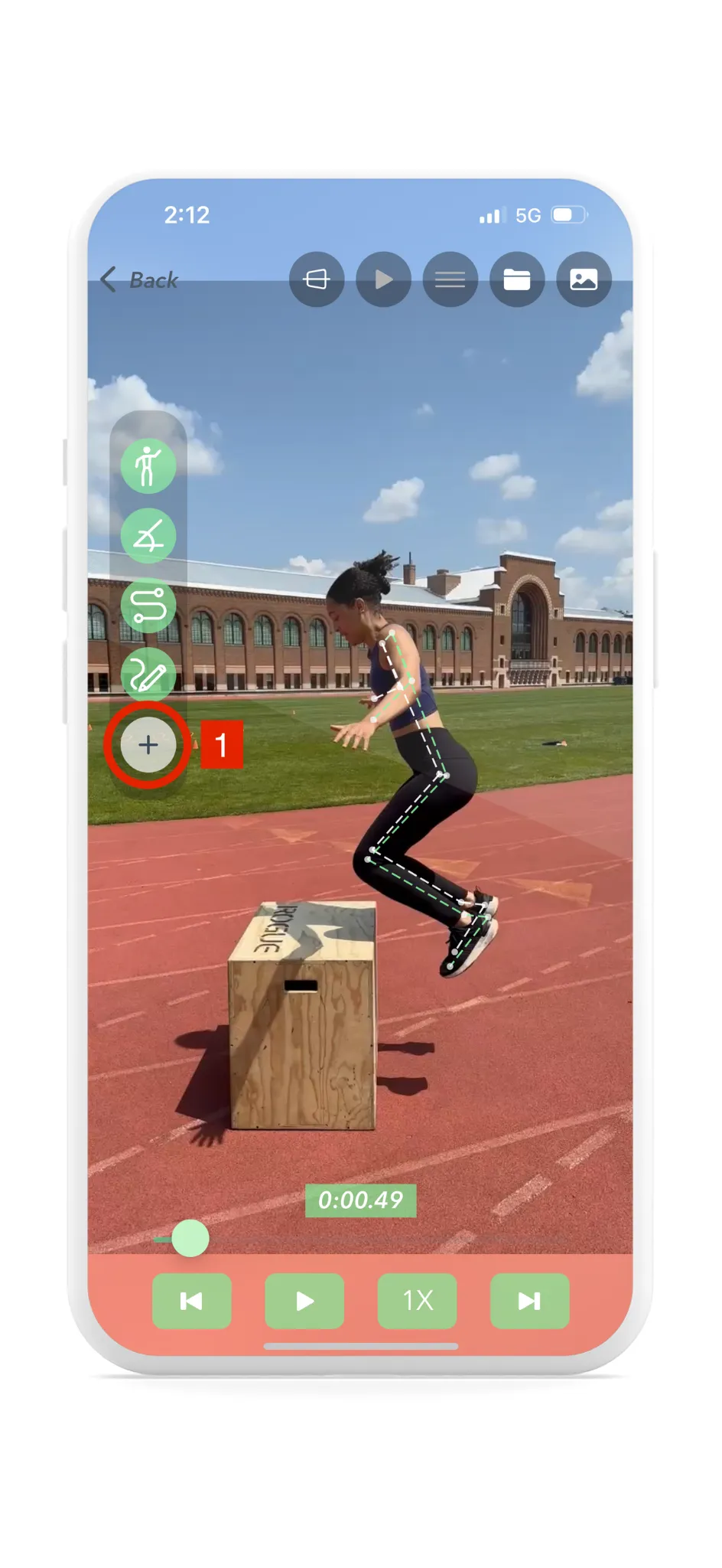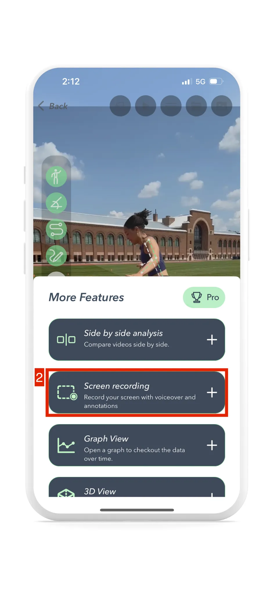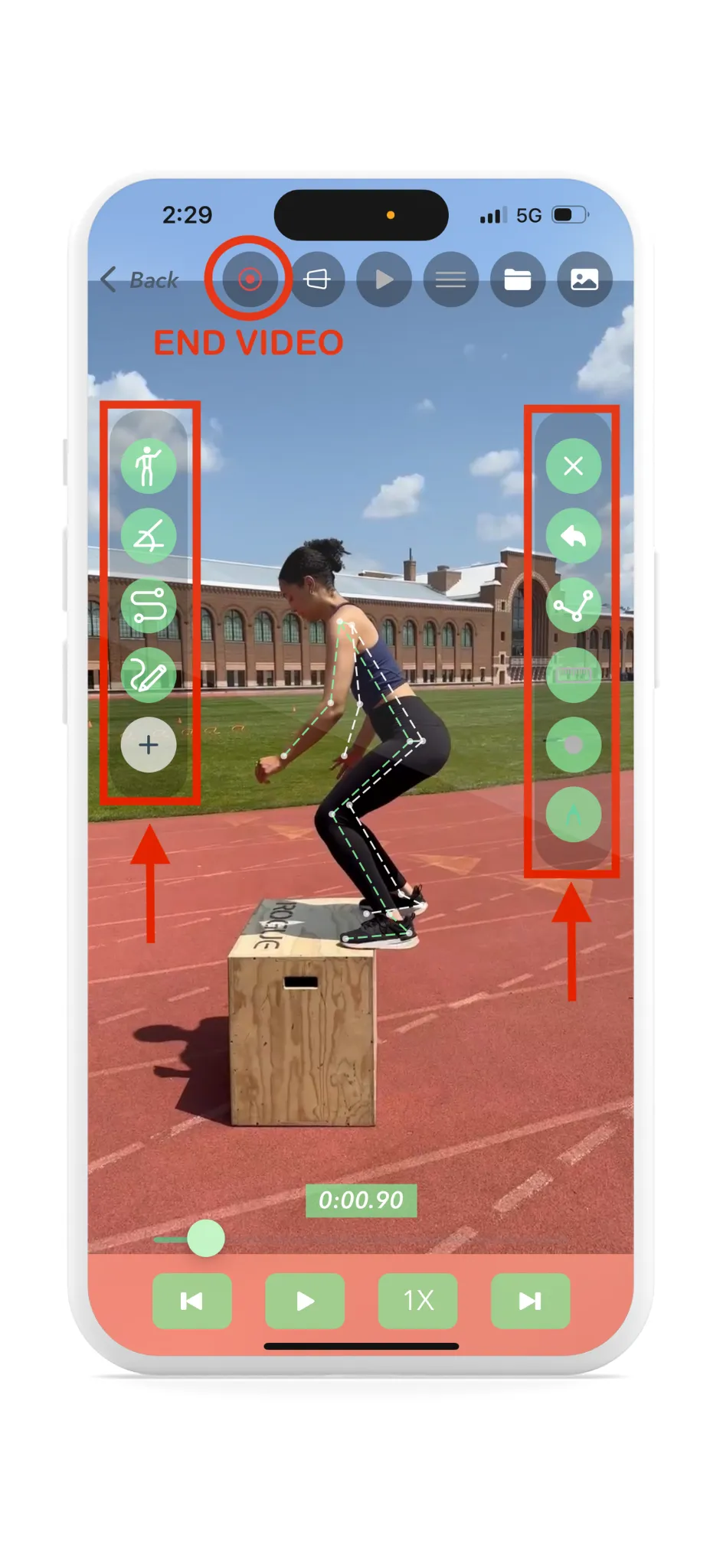During screen recording, you can navigate between all of Yogger’s analysis features, including drawing annotation, isolating angles, and drawing joint paths throughout. To finish the recording, an “End Recording” button will appear in the top middle of the screen.