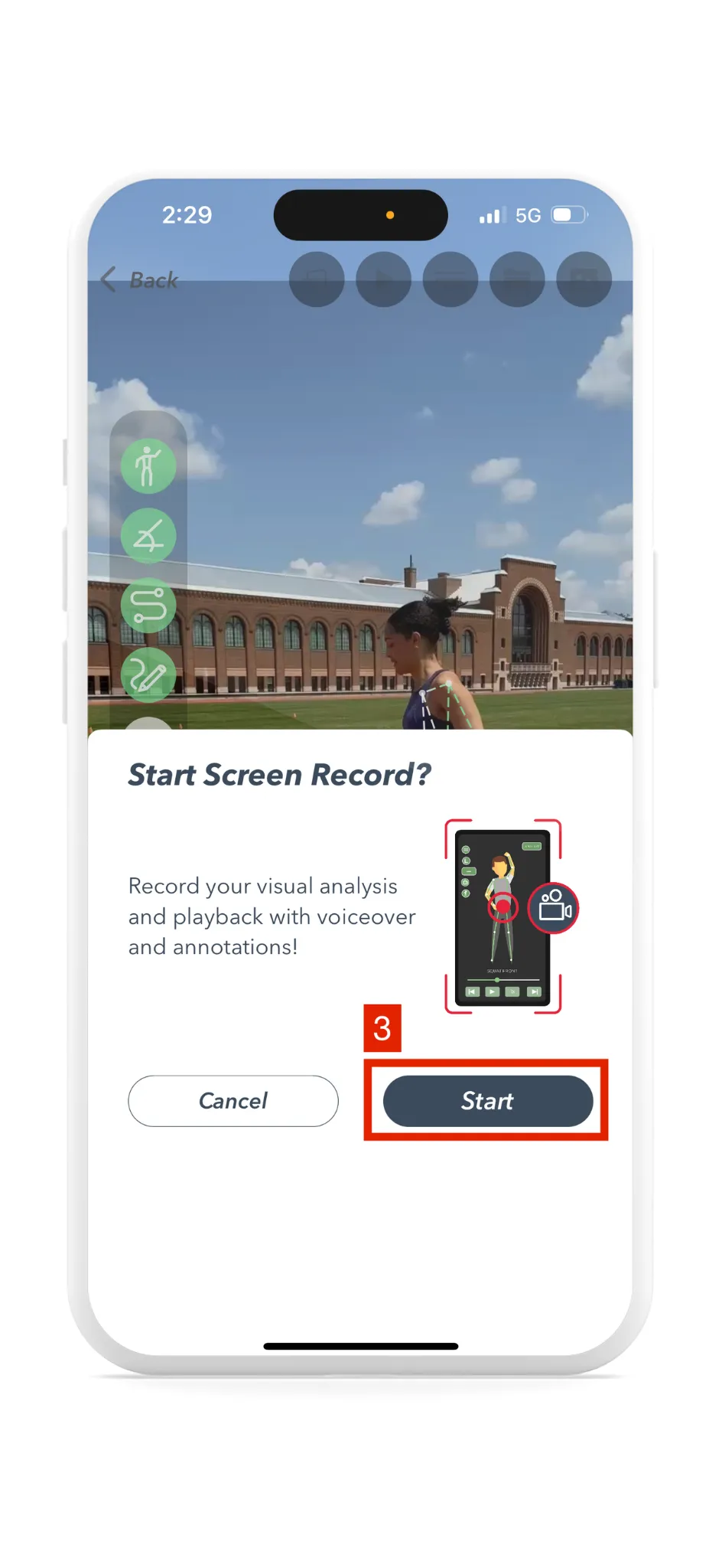 Yogger offers a robust “Screen Recording” functionality, enabling users to capture and analyze their movements in real-time. The screen recording allows users to export and save their analysis, annotations, and voiceover while playing through a video.