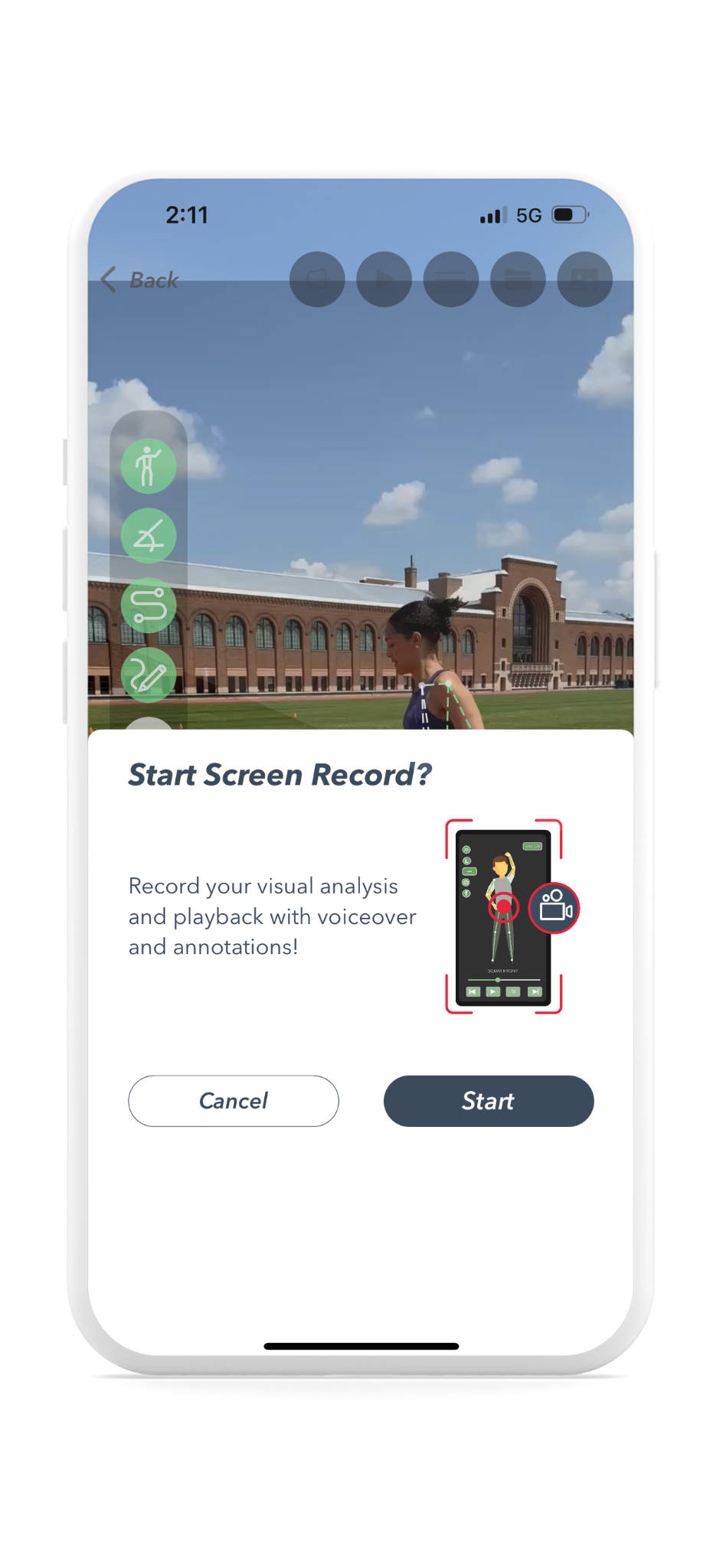 The intended purpose of the screen record functionality is to enable users to share their expertise, analysis, or questions about their videos with others. Through screen recording, you can walk through the analysis of a video, make verbal notes or coaching remarks while displaying specific form and critiquing through Yogger’s video analysis tools to help the coaching or analysis come to life.