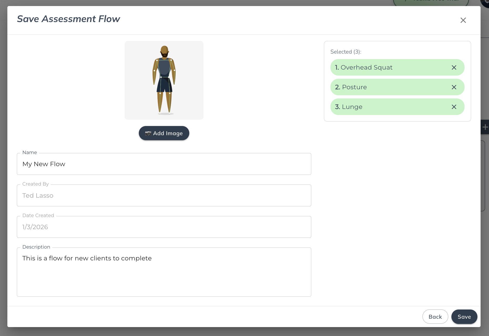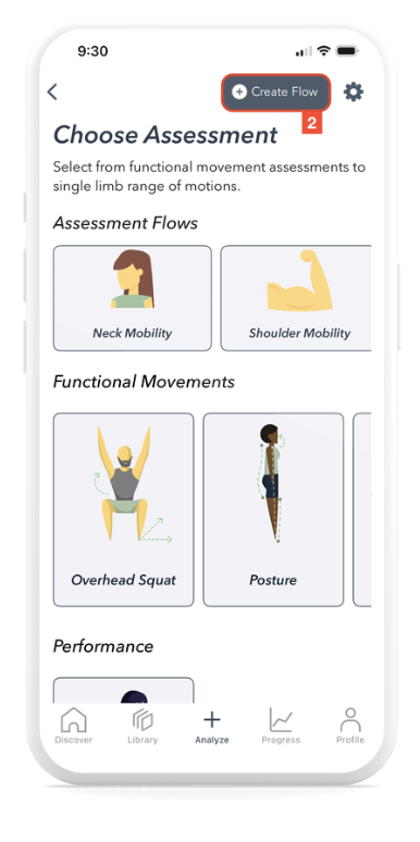 Use Assessment Flows when onboarding new clients to collect baseline data, screening for potential injury risk or movement limitations, or tracking progress over time.
