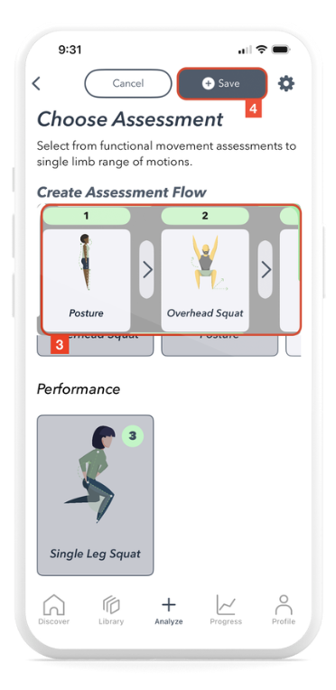 You’ll be guided through choosing the assessments you want to include in your sequence. After selecting your assessments, customize the flow by adding a name, image, and description, then click Save.