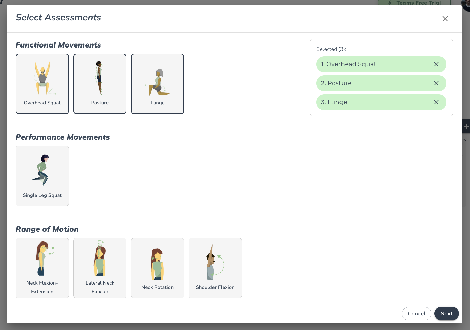- Group assessments together based on a common focus, such as mobility, range of motion, or strength.