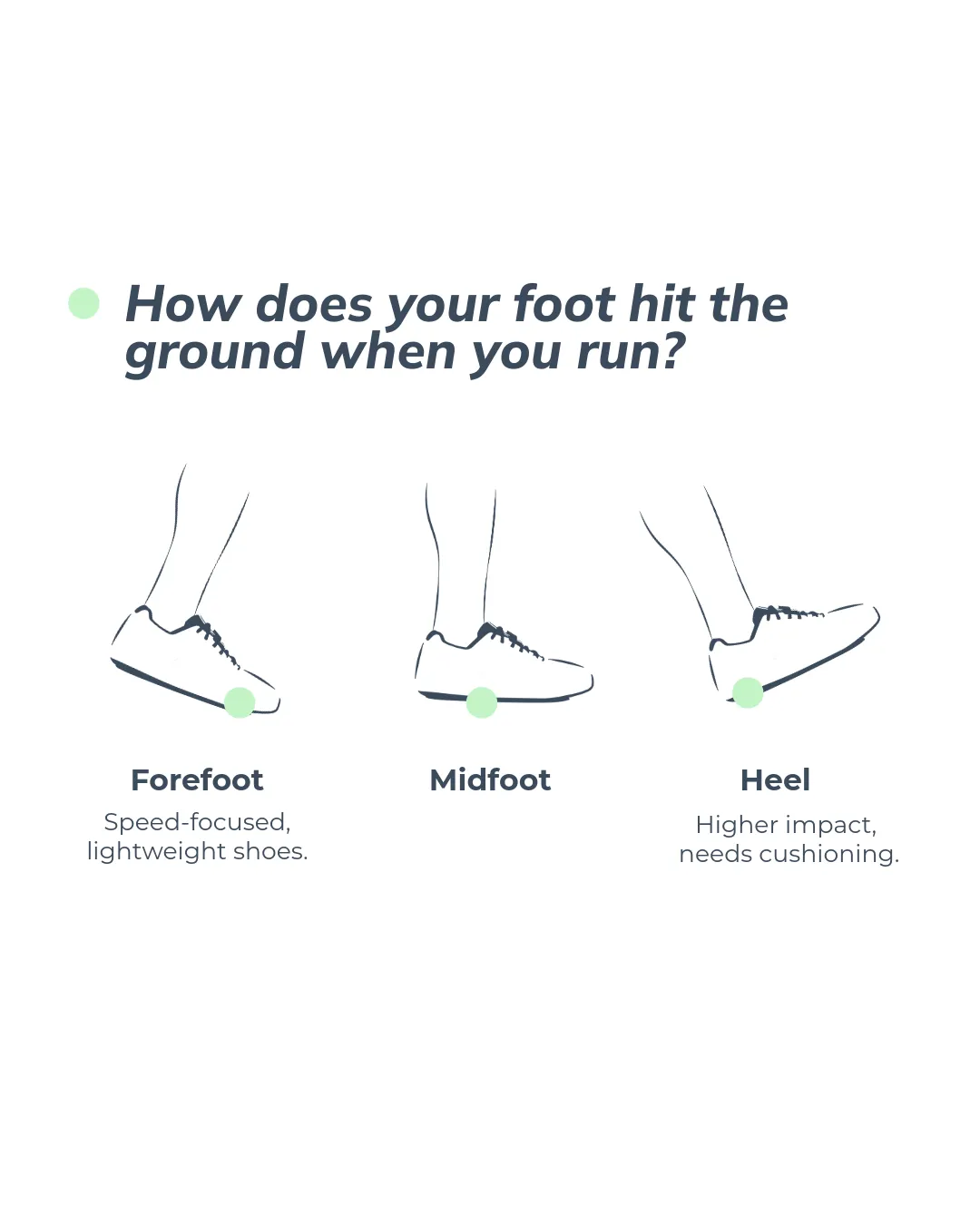 Matching your foot strike with the right shoe increases comfort and reduces injury risk. Here are some general guidelines: